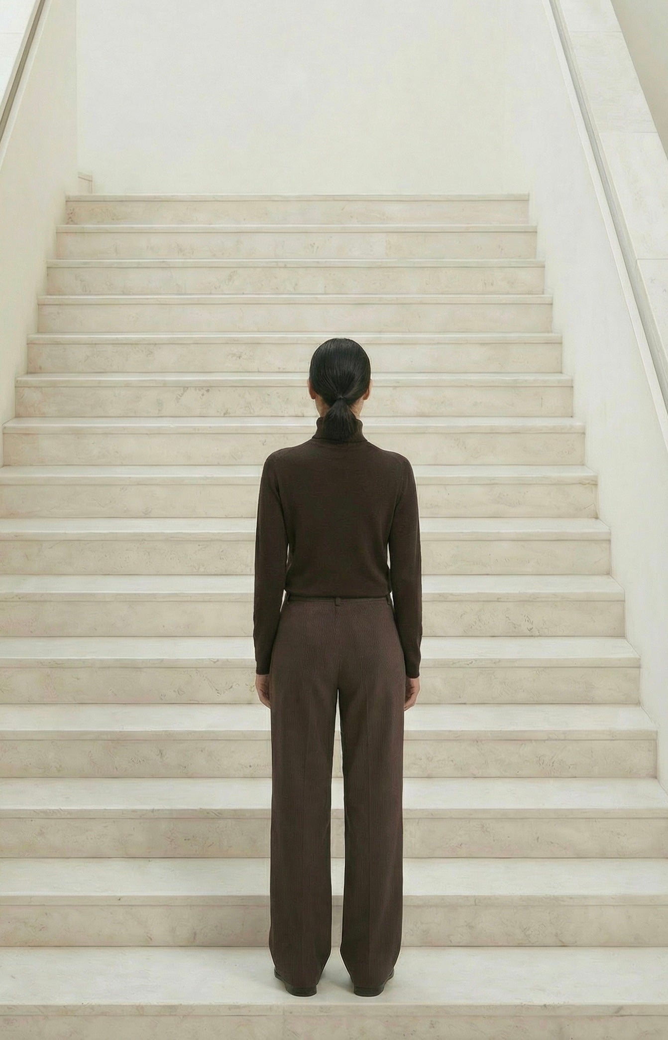 Pantalon Tailleur Marron Rayé – 100 % Coton