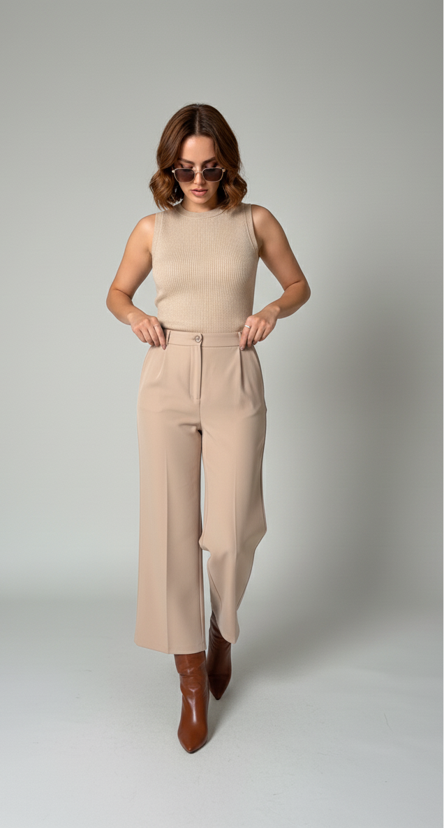 Découvrez notre pantalon taille haute beige, pensé pour allier élégance et confort au quotidien.